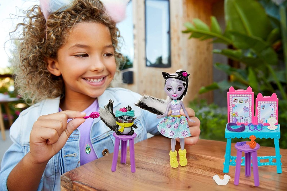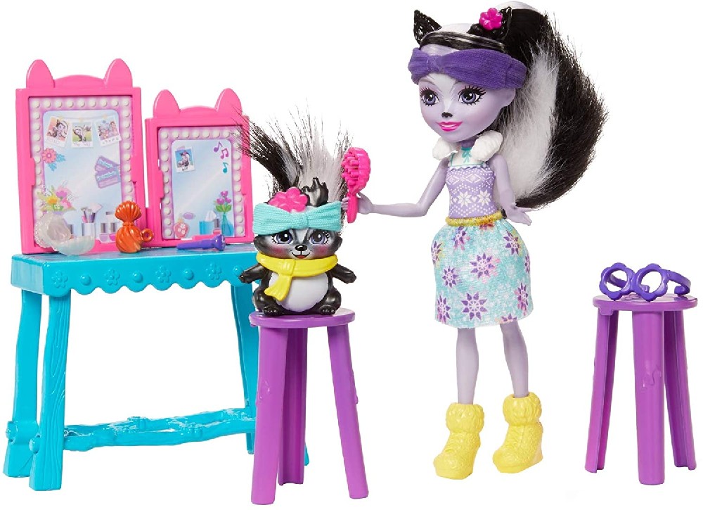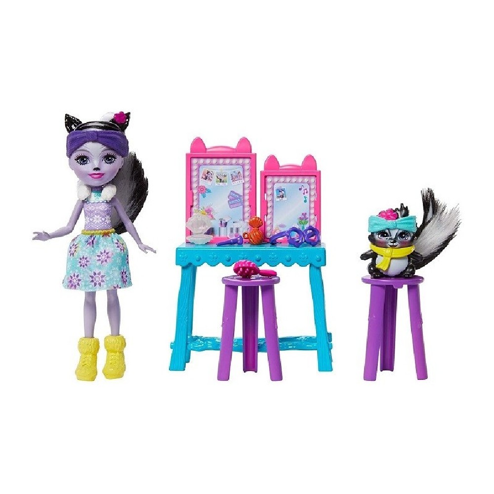 MATTEL ENCHANTIMALS TOCADOR CON MUÑECA SAGE SKUNK Y CAPER