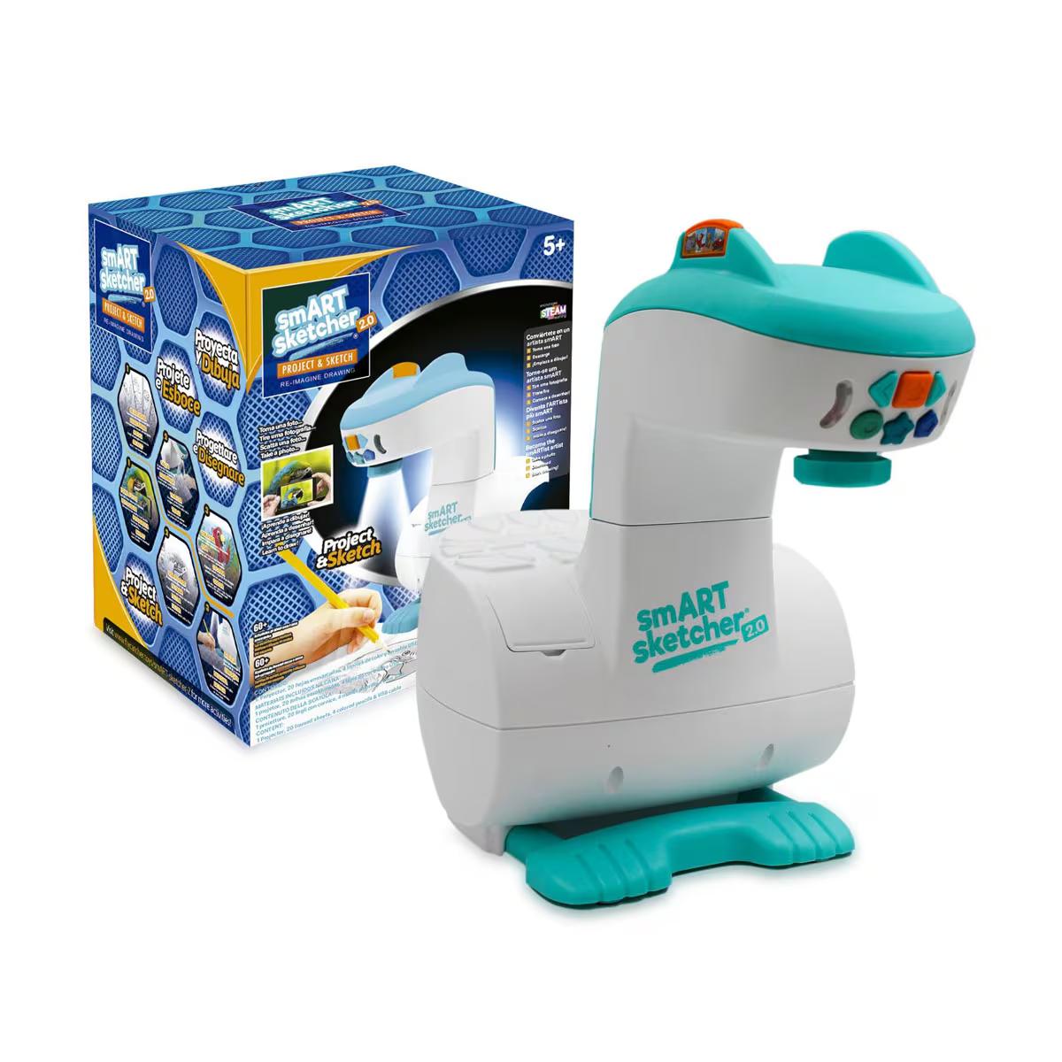El Proyector Smart Sketcher 2.0 de FAMOSA es un juguete educativo y artístico que permite dibujar, calcar o colorear. Facilita el aprendizaje del dibujo mediante imágenes prediseñadas en tarjetas y la opción de proyectar fotografías desde un smartphone o tablet. Los usuarios pueden capturar imágenes y calcar sobre papel, promoviendo la habilidad manual y la inteligencia. Se conecta a través de Bluetooth y cuenta con una aplicación que amplía sus posibilidades creativas.