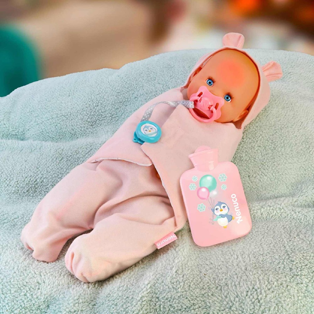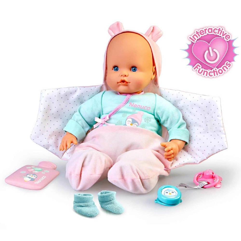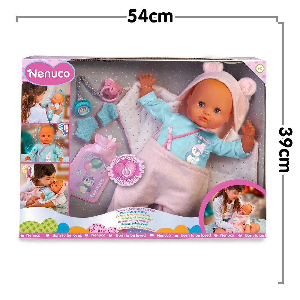 Nenuco – ¿Estás bien tapadito?, muñeco de cuerpo blando, se pone malito, le cuidas con la manta, tiembla y tiene fiebre, el set tiene accesorios de cuidado, un chupete y patucos, Famosa