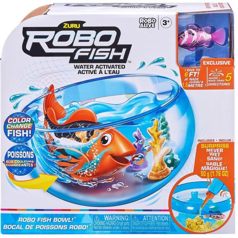Deja caer tu Robo Fish en el agua y mira cómo cobra vida con la avanzada tecnología activada por agua de ZURU. Estos peces nadan en 5 direcciones diferentes y se sumergen hasta 6 pies con tu propio juego Robo Fish.