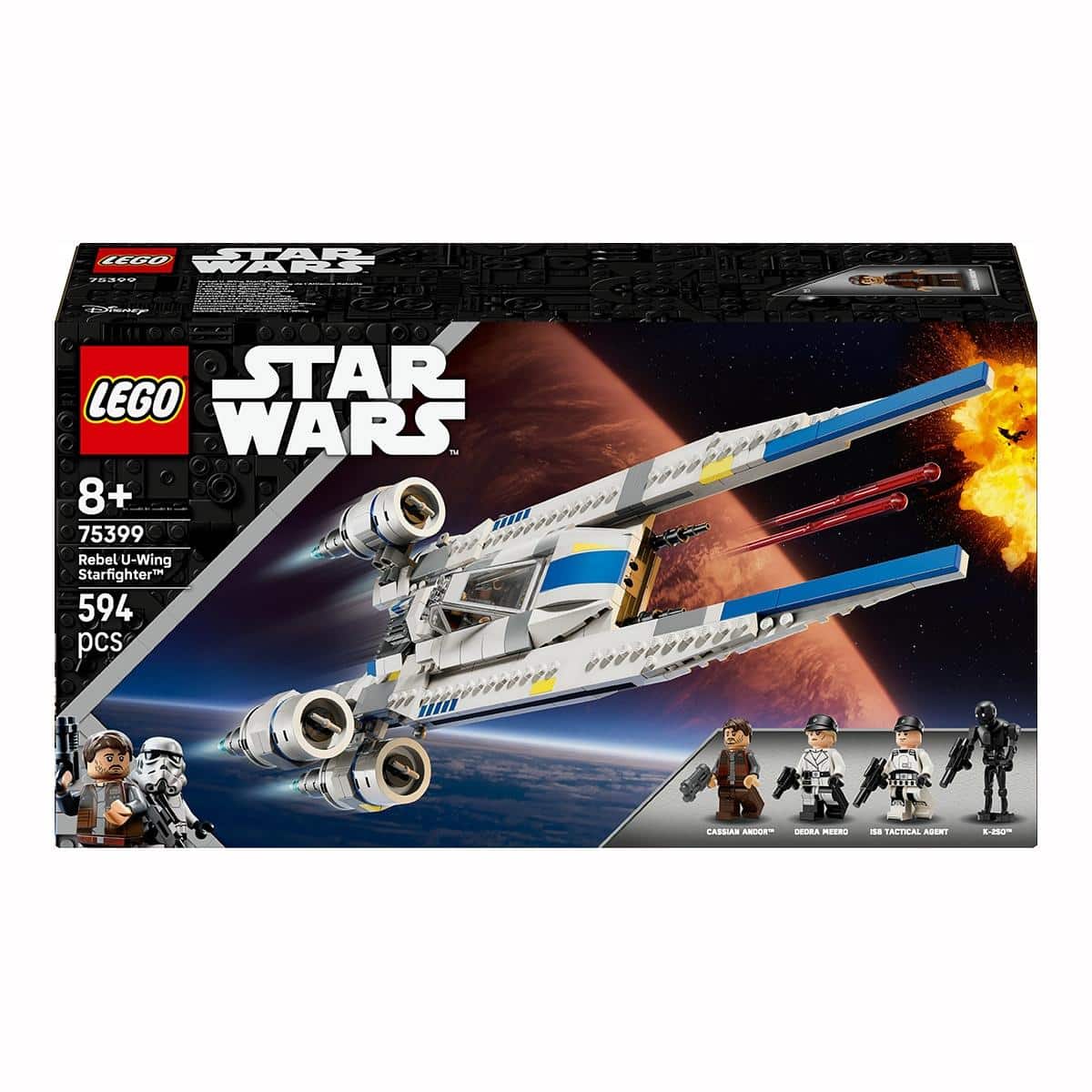 Los niños se unen a Cassian Andor y K-2SO para recrear escenas de la temporada 2 de Star Wars: Andor™ con el kit de maqueta construible Caza Estelar Rebelde Ala-U (75399). Un divertido regalo de cumpleaños para niños, niñas y fans de Star Wars™ a partir de 8 años, el caza estelar Ala-U LEGO® de juguete para construir cuenta con una función de ajuste de alas para cambiarlas de la posición de aterrizaje a la característica forma de V del modo de vuelo, así como con 2 cañones automáticos. La cubierta transparente de la cabina se libera accionando una palanca y también hay un compartimento de pasajeros y de carga que se abre.