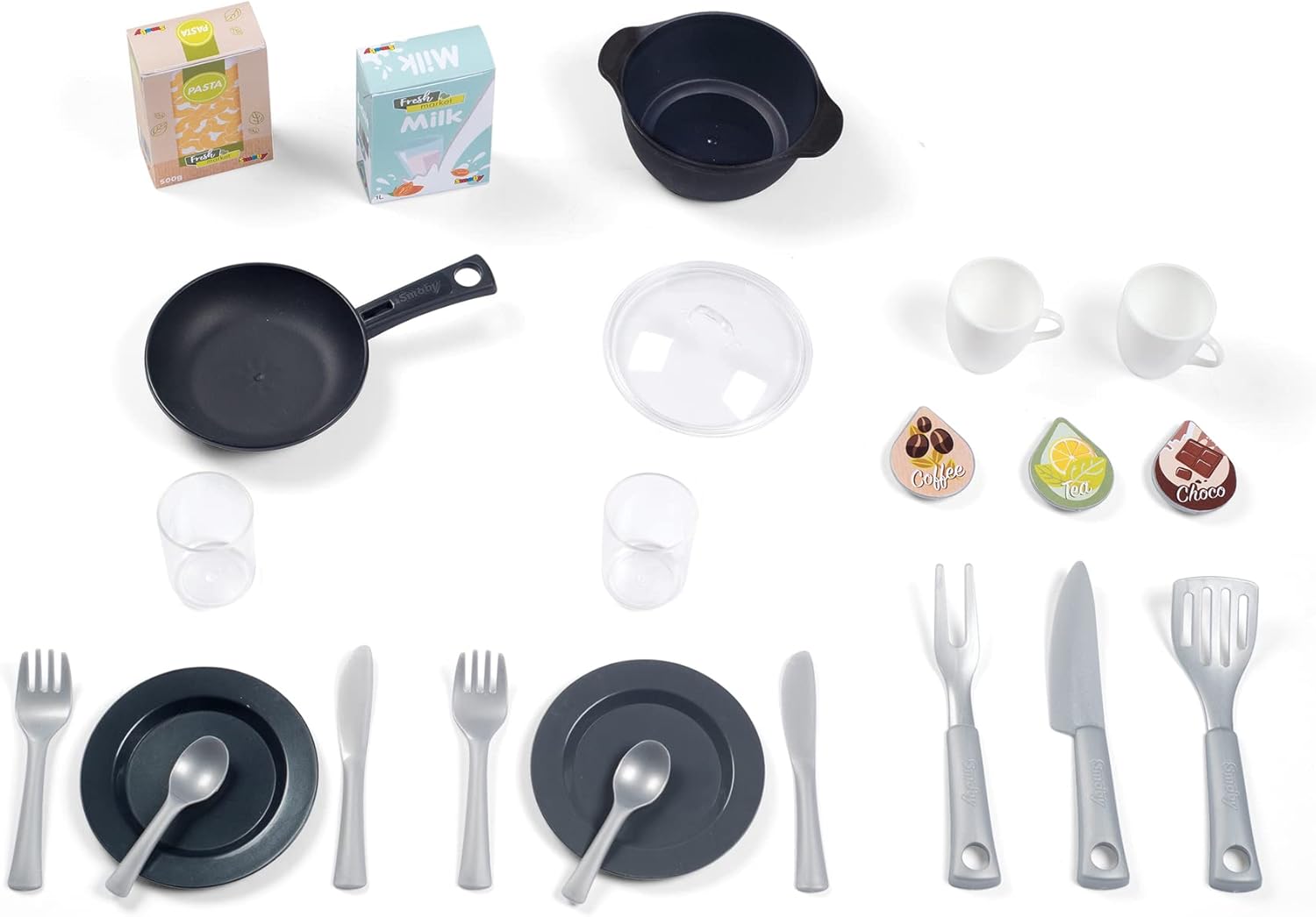 Smoby- Cocina de Juguete Bon Appetit, 23 Accesorios, Horno y Campana, Placa de Cocción con Efectos Sonoros, A Partir de 3 Años (7600310824)