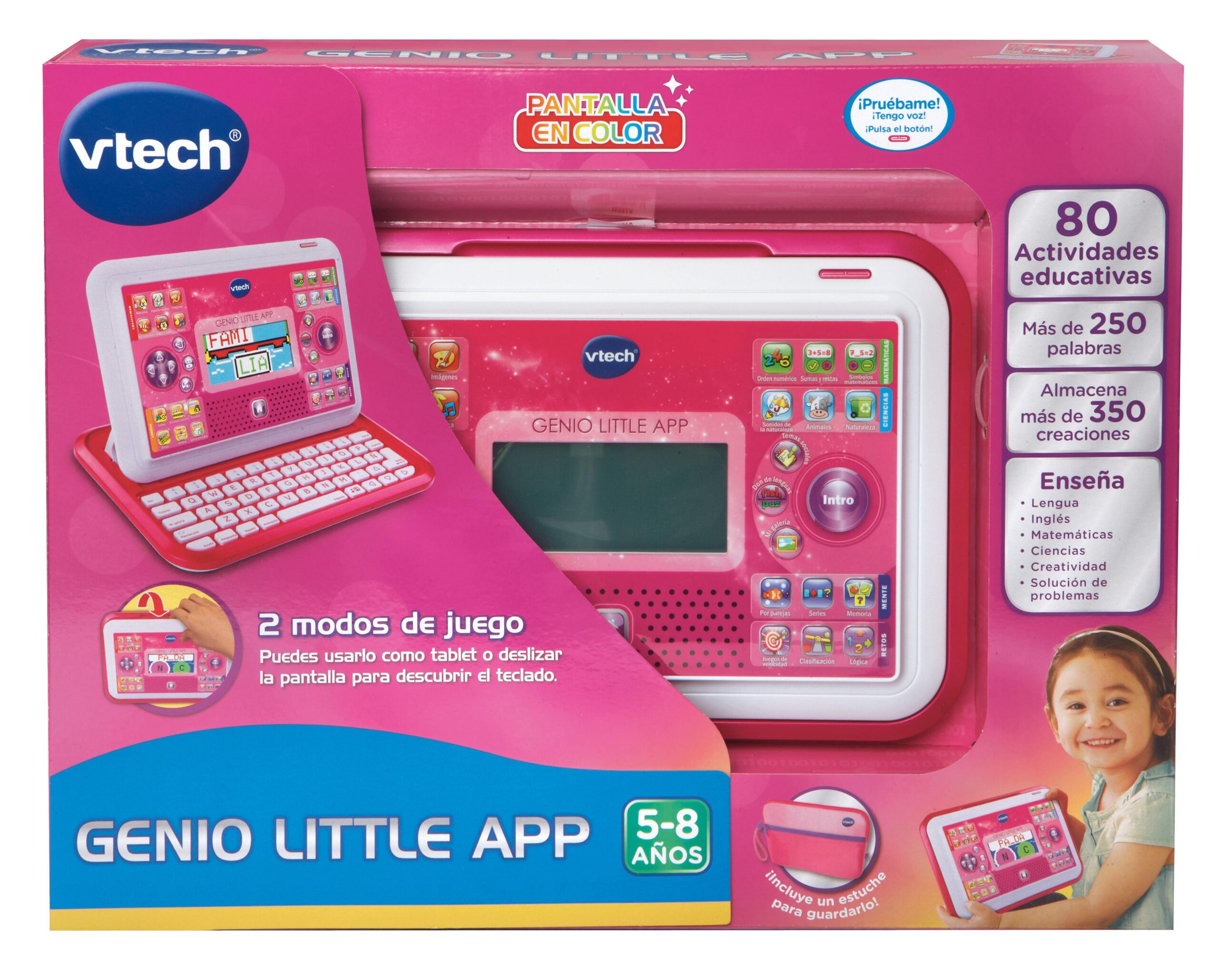El Genio Little App ROSA de VTech es un ordenador educativo infantil con pantalla en color y función deslizable, perfecto para que los niños y niñas jueguen y aprendan de dos maneras: como tablet interactiva o como portátil infantil. Su diseño en color rosa lo hace aún más atractivo para los más pequeños.