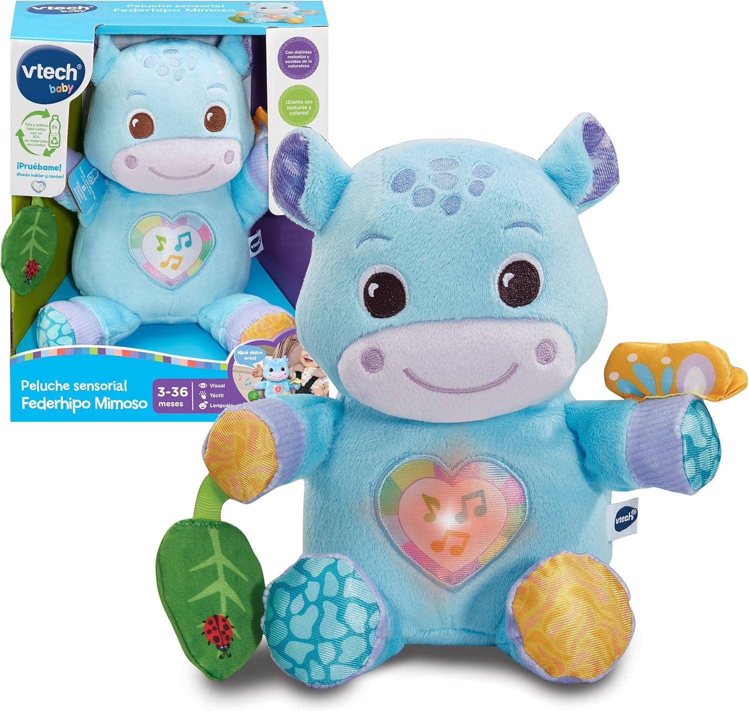 VTech – Peluche sensorial Federhipo mimoso, Peluche Interactivo para bebés, Promueve el Desarrollo temprano, Exploración táctil, Regalo bebés +3 Meses, Versión ESP