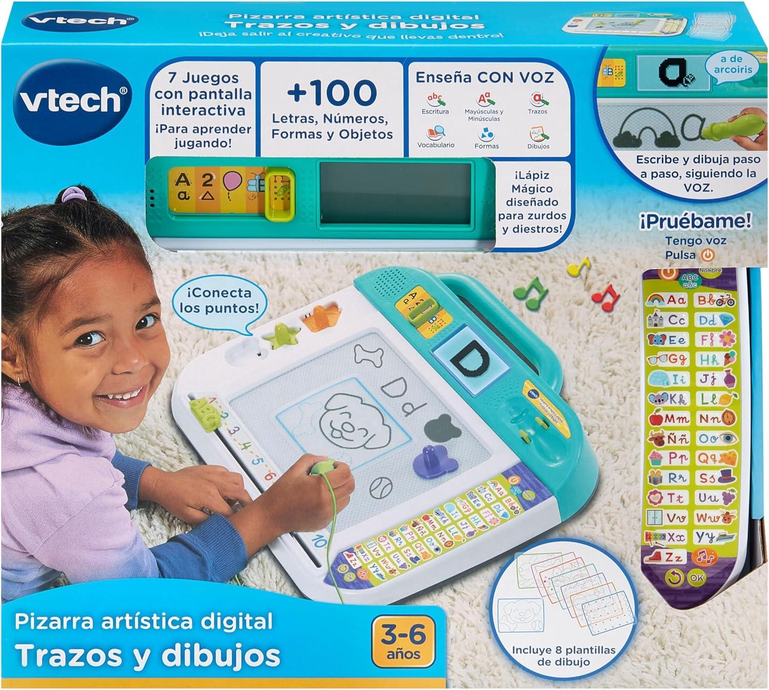 VTech – Pizarra Artística Digital Trazos y Dibujos, Pantalla LCD, Voz Interactiva, Juguete Educativo 3-6 años, Versión ESP. VTech – Pizarra Artística Digital Trazos y Dibujos | Juguete educativo en español para niños +3 años