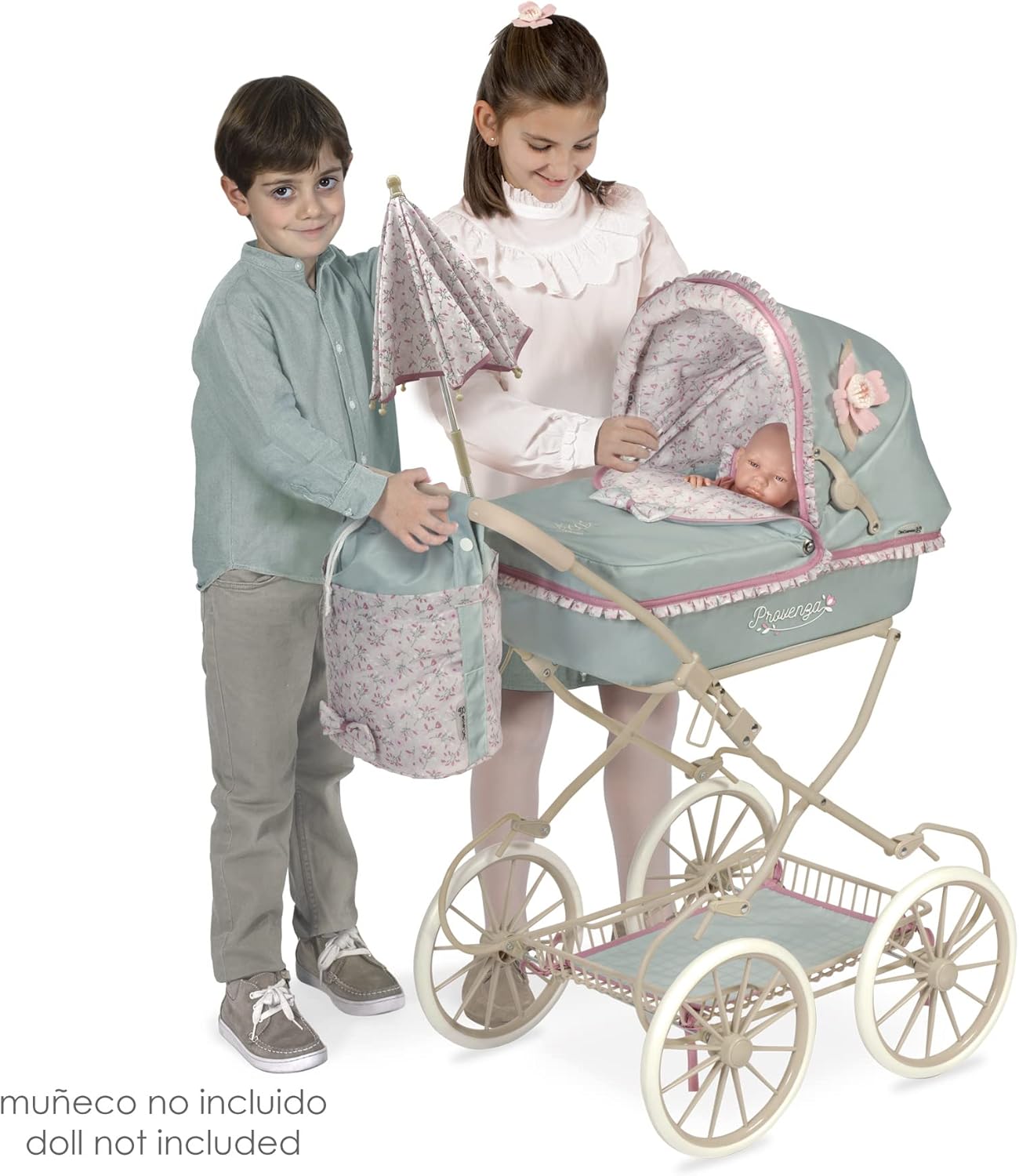 Elegancia y diversión de la mano de este fantástico Carro de Muñecas Provenza Plegable con Sombrilla de DeCuevas Toys, una oportunidad sin igual de jugar junto a los peques y su querido muñeco bebé. El carrito se ha fabricado en materiales de la mejor calidad, con diseño clásico y muy realista, ideal para desarrollar horas de juego de imitación que ayuda a desarrollar habilidades, a la vez que lo pasan en grande.