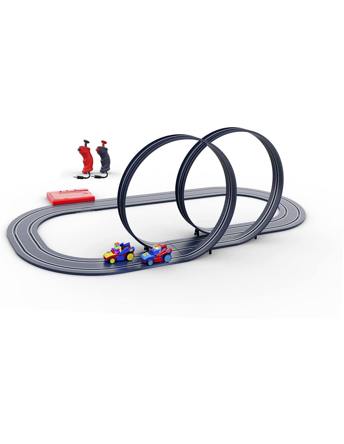 Ciruito SUPERTHINGS con 320 cm de recorrido y doble looping. Fácil y rápido montaje. Funciona con pilas.