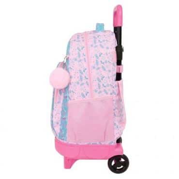 Mochila trolley de la marca GlowLab. El color principal es el rosa y tiene toda la superficie con estampados. Se cierra con una cremallera. Tiene dos asas acolchadas y regulables para llevar en la espalda y un asa de mano. Un bolsillo exterior con cremallera. Tiene un motivo estampado sobre la superficie. Tiene un pequeño detalle bordado sobre la superficie. Las medidas aproximadas son 45x33x22 cm. Este producto licenciado es oficial y 100% original.