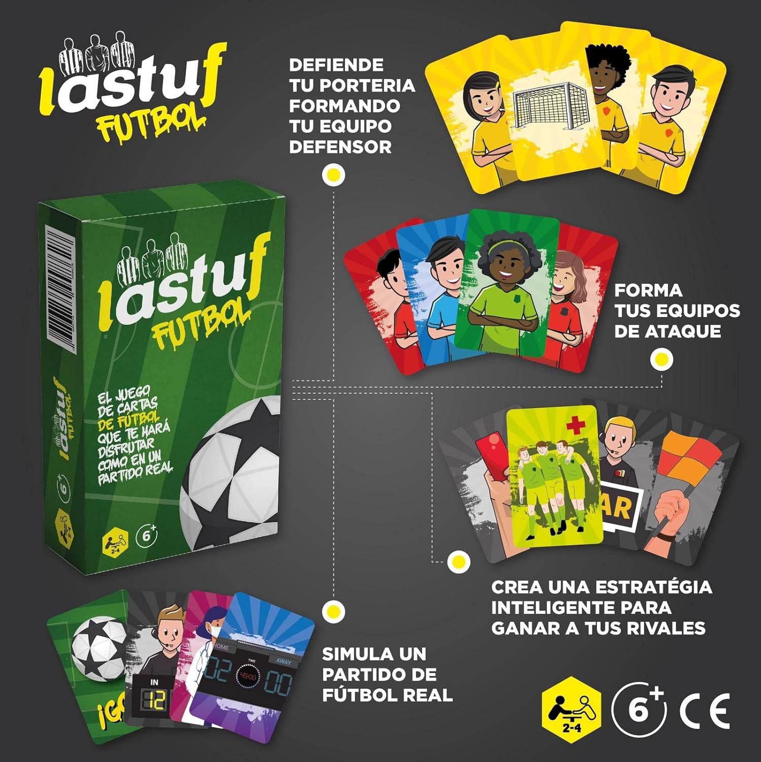 Juego de cartas de futbol en el que para ganar los jugadores deberán marcar goles a sus rivales para eliminarlos. Las reglas sencillas convierten esta baraja en un gran pasatiempo y un entretenido juego de mesa de su deporte preferido.