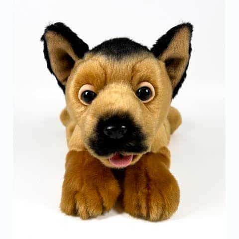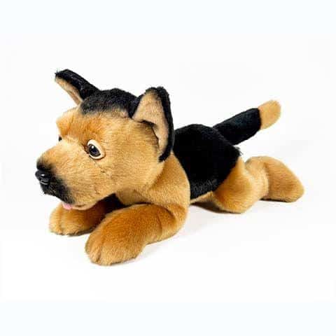 El peluche Pastor Alemán Tumbado mide 25 cm. Con la compra de este peluche contribuirás con la Fundación BOCALÁN para el adiestramiento de los animales con el fin de mejorar la autonomía de personas con discapacidad.