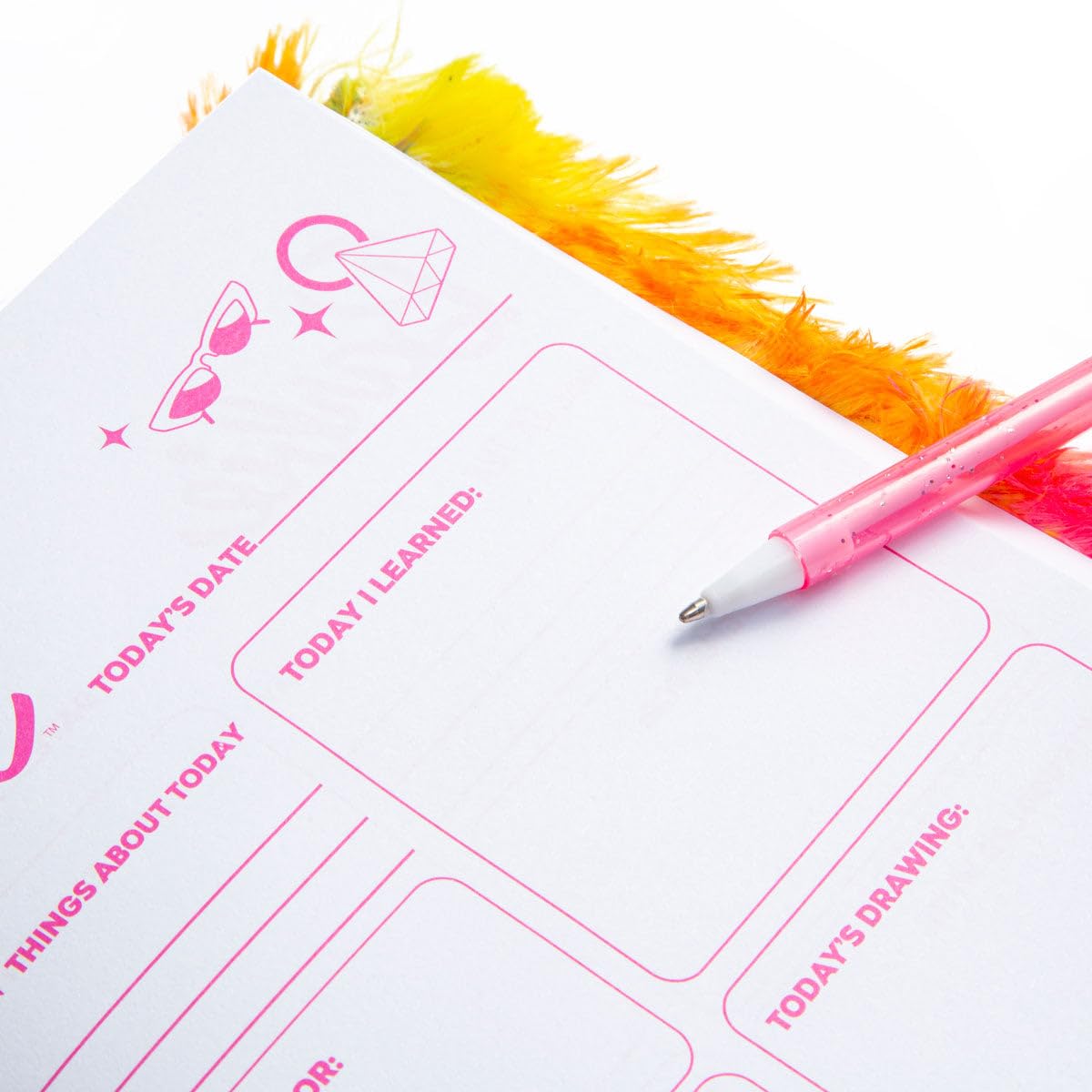 Barbie – Juego de diario extra mullido para niñas, papelería personal, pompones, clips de papel, pegatinas holográficas regalo para niños 5+
