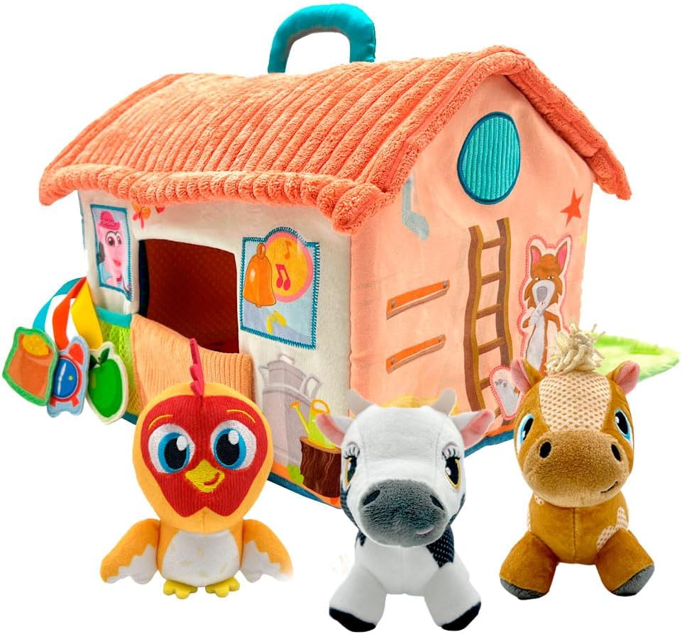 Granja maletín de Peluche con diferentes texturas y accesorios para no parar de jugar y recrear tus aventuras de La Granja. Incluye un asa para trasportar y, 3 Mini Peluches Musicales y con sonidos y música de La Vaca Lola, el Gallo Bartolito y el Caballo Percheron. ADVERTENCIAS: Contiene un juguete. Utilicese bajo la vigilancia de un adulto.Retire todo el empaquetado incluyendo etiquetas, cuerdas y sujeciones antes de entregar el producto a un niño. Las especificaciones y colores del producto pueden variar respecto.