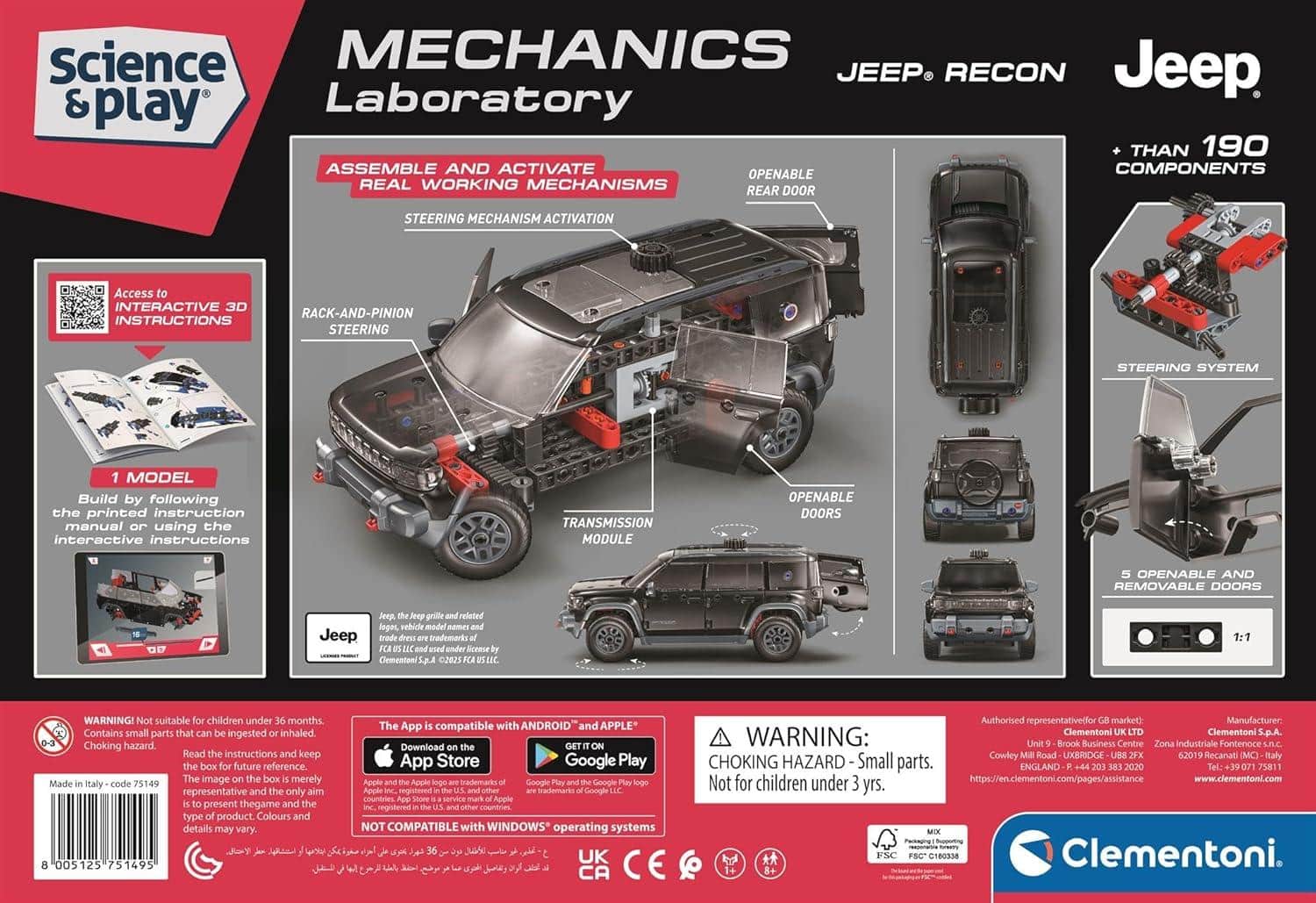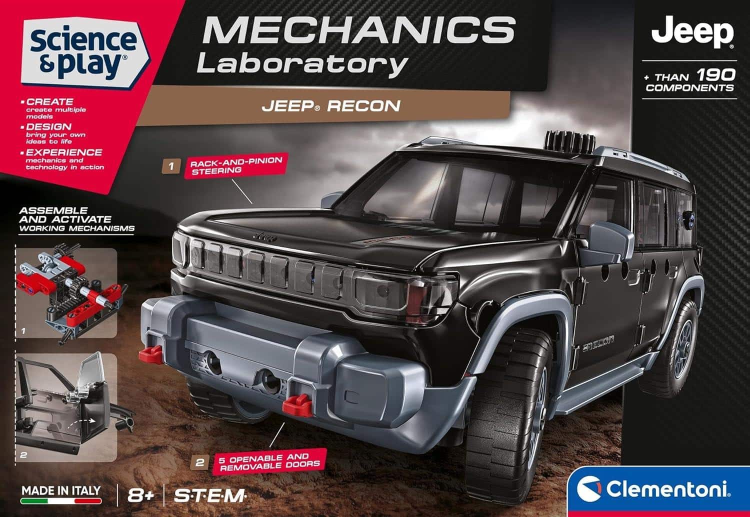 Clementoni Mechanics Jeep Recon 4×4 – Buildable Electric Off-Road Vehicle Model Kit with 200+
