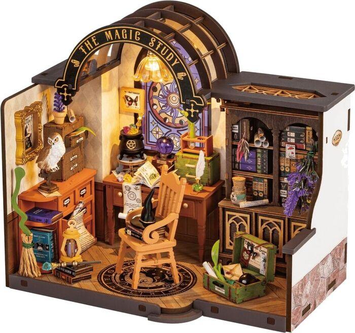 Descubre la magia con el Estudio Mágico de Rolife, una casa en miniatura DIY llena de detalles que recrean el espacio de un auténtico mago. Desde un antiguo libro de hechizos hasta un orbe de cristal para la adivinación, cada elemento aporta un toque místico. Su baúl de pociones, la biblioteca encantada y la iluminación cálida crean una atmósfera envolvente y única.