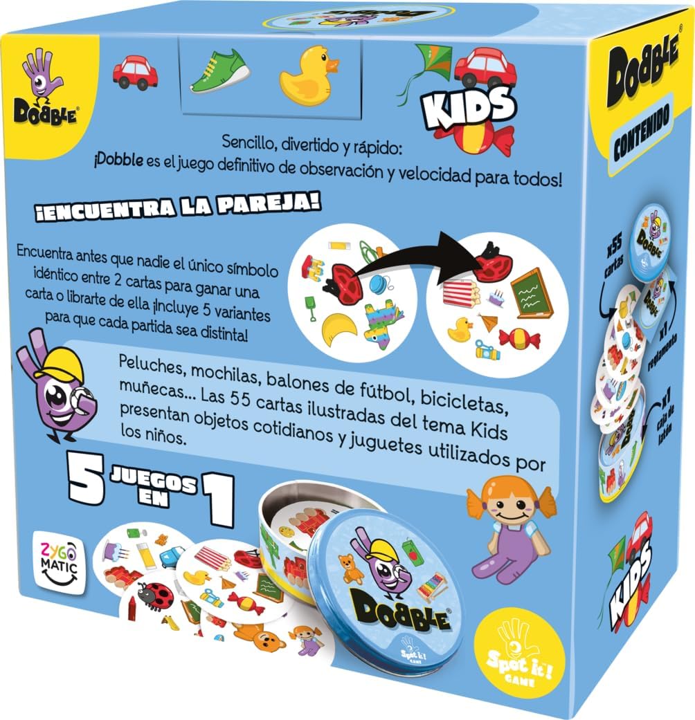 Como su hermano mayor, Dobble Kids contiene 5 mini juegos que utilizan ese principio.