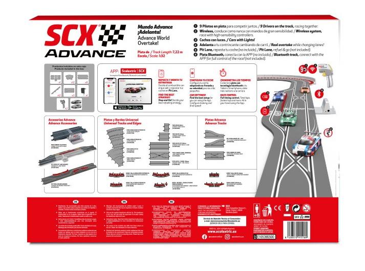 Pista Scalextric Advance | Escala 1:32 | Tecnología y precisión al máximo nivel Scalextric Advance revoluciona el slot digital con un sistema de alta precisión en la escala reina 1:32, diseñado para quienes buscan máximo realismo y control total en carrera. Control digital avanzado: Experimenta una conducción mucho más sensible y reactiva, con cambios de carril, adelantamientos y gestión de vehículos como nunca antes. Conectividad inteligente: Configura tus coches, perfiles de piloto y carreras desde tu Smartphone o Tablet mediante Bluetooth (compatible con pistas E1029X200). Sistema ampliable: Expande tu experiencia con una completa gama de pistas, accesorios y coches digitales. Medidas de la caja: 71 x 52 x 18 cm Modelos compatibles con toda la gama Scalextric Advance