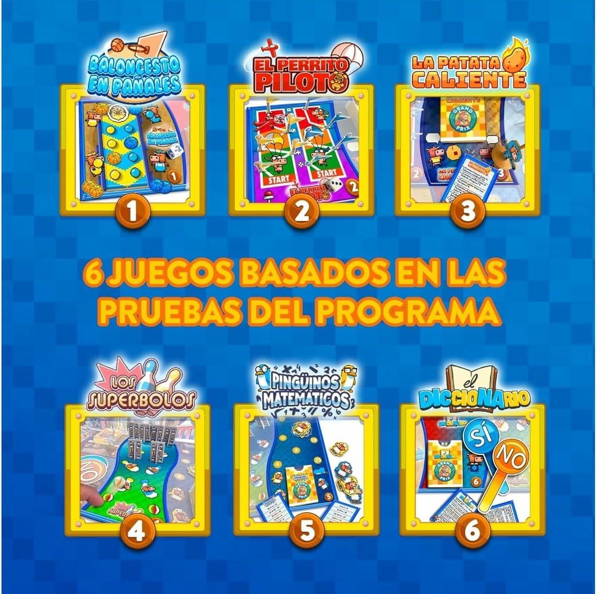 GRAND PRIX – Juego de Mesa Familiar del Programa Televisión, 6 Juegos en 1, Contador y Accesorios Incluidos, 4-10 Jugadores, 20 Minutos de Partida, Niños 6 años+, Español, Famosa (GRN01000)