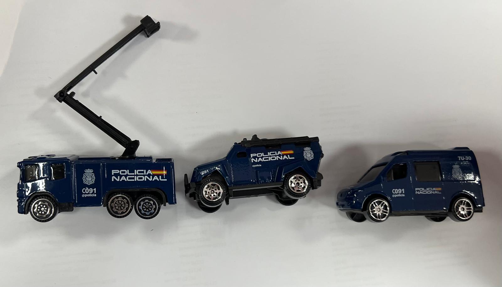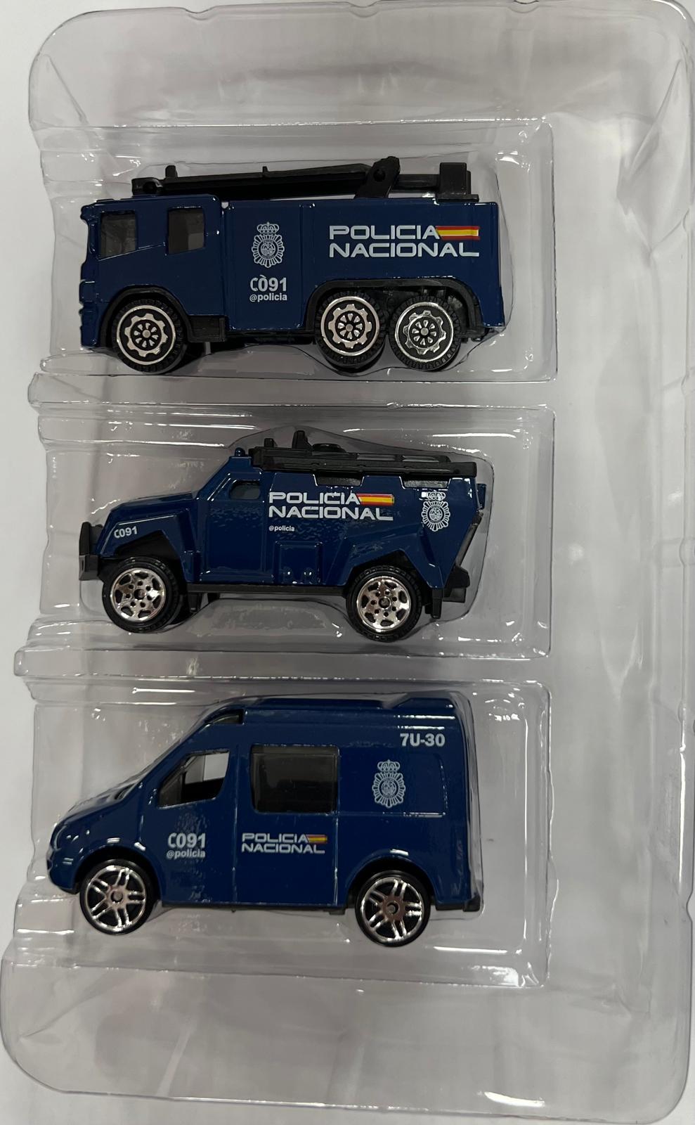 Set de vehículos Policía Nacional :Cada vehículo mide 7,2 centímetros.La caja mide 24.5 x 11.5 cms.vehículo de metal y plástico,ideal para coleccionar y para la diversión de los más peques.