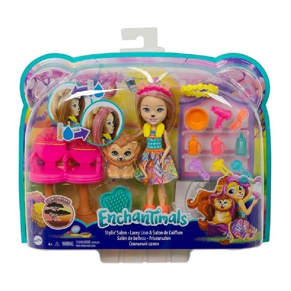 ENCHANTIMALS MUÑECA LACEY LION Y SALÓN DE BELLEZA