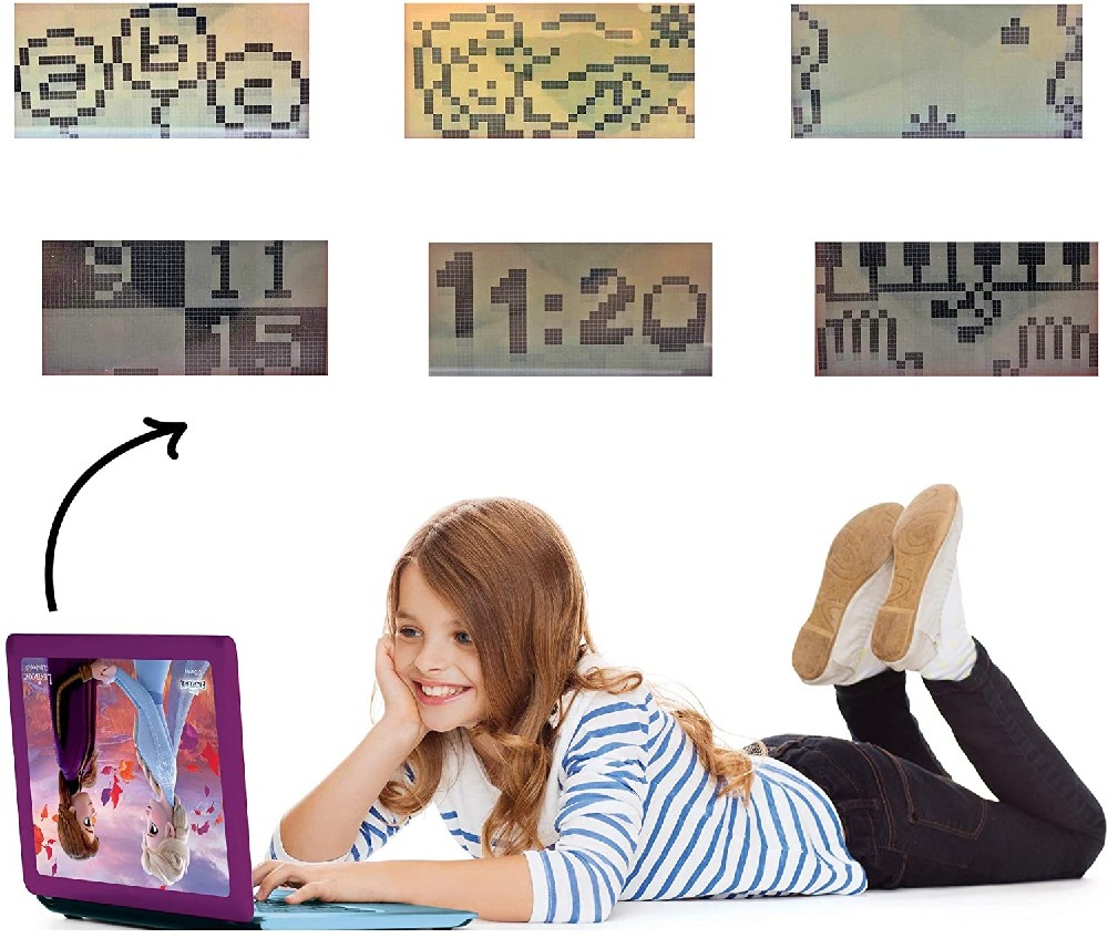 Gracias a este ordenador educativo, tu hijo podrá aprender y descubrir muchas materias tanto en inglés como en español y divertirse al mismo tiempo. Gracias al ratón incluido, es muy fácil navegar por las 124 actividades (62 en cada idioma). Estas actividades están divididas en 5 temas: Aprender palabras, Matemáticas, Música, Conocimientos, Lógica y Juegos. En cada tema, hay varias actividades con diferentes niveles de dificultad. Por lo tanto, este portátil es perfecto para niños de 5 a 8 años, ¡sin importar su nivel educativo! También es el regalo perfecto para los cumpleaños o la Navidad!