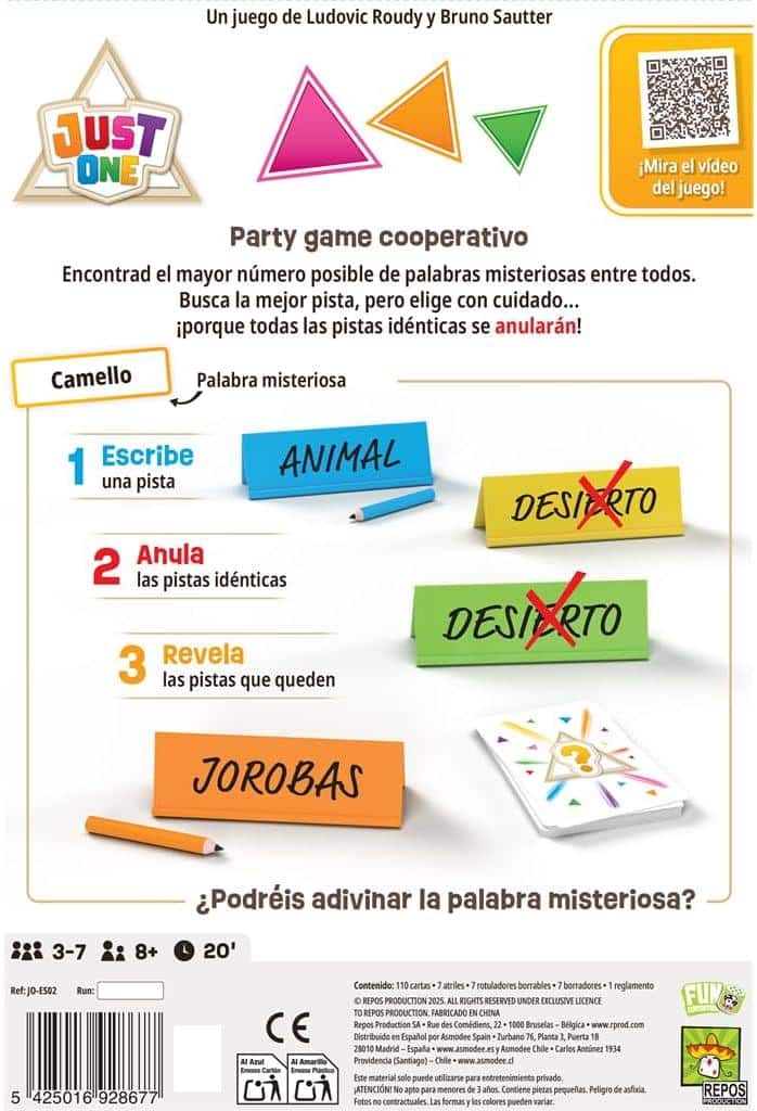 Just One es un party game cooperativo en el que tendréis que conseguir que alguien adivine una palabra misteriosa, escribiendo en secreto una pista en vuestros atriles.