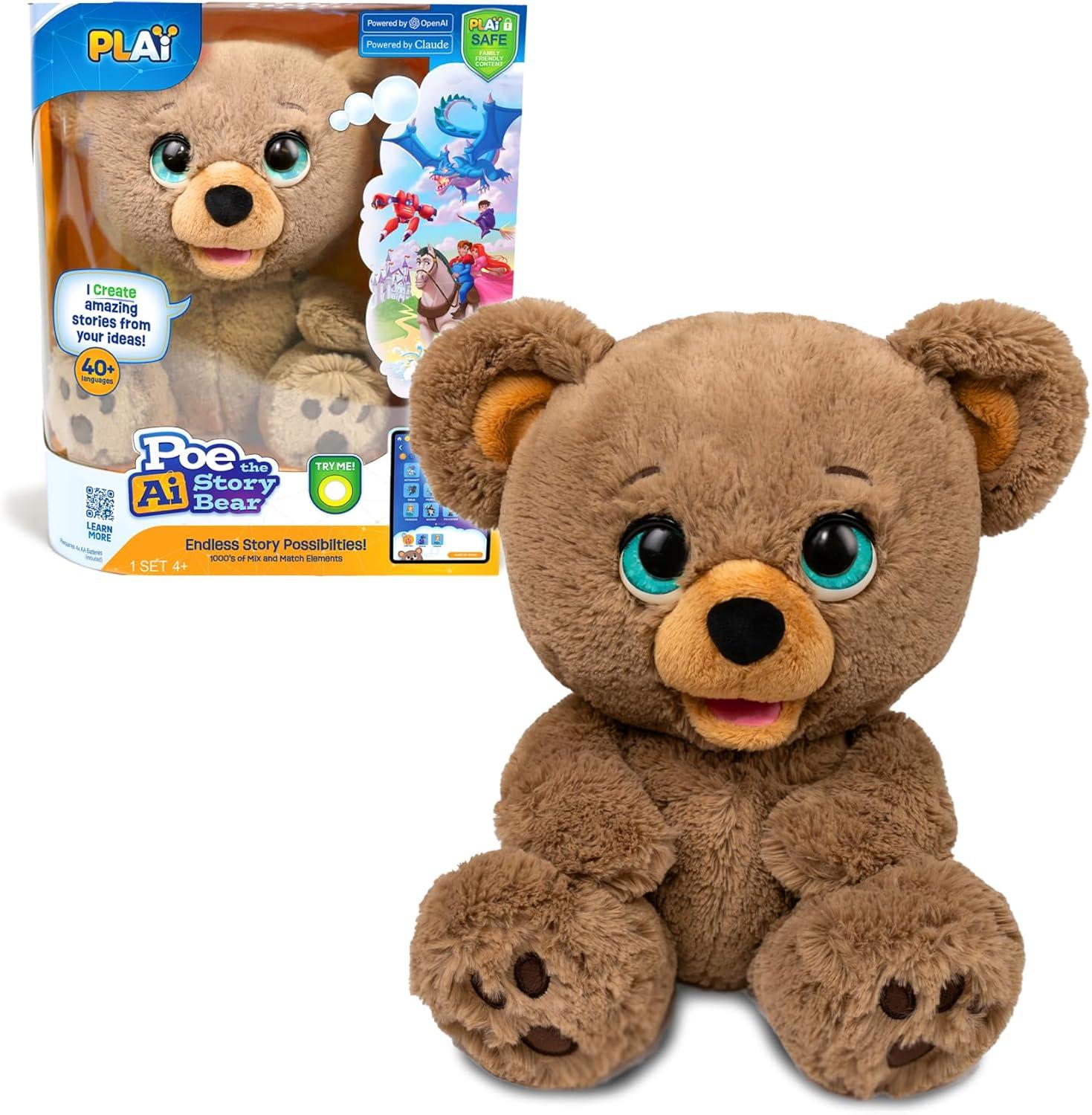 PLAi – PoE el Osito con Inteligencia Artificial, CREA Historias con una App y Mueve la Boca al Contarlas, Utiliza Tecnología IA de ChatGPT Apta para Niños, Memoría de 60 Minutos, Famosa (LAY00000)